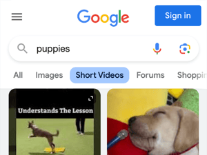 In a foreseeable-yet-still-a-bit-surprising move, Googlers stumbled across a new filter when searching the Google app on an Android device. Right up there with ‘Images’, ‘Shopping’, and ‘Videos’, there’s a new option: Short Videos.